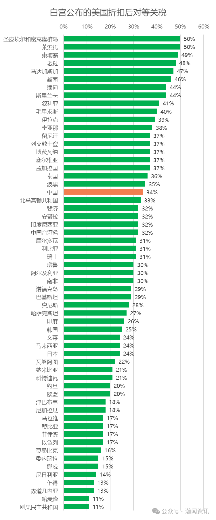 港澳的对等关税:根据白宫原文,将和中国大陆面临相同税率(34%)。
