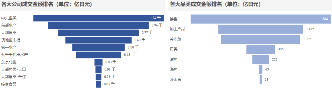 加工产品:增长最快(年增幅12%),丸千千代田水产独占鳌头(年交易额2.8万亿日元)。